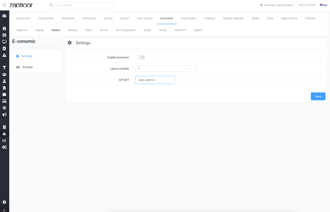 The Layout Number is a required ID you can find in e-conomic. The layout number refers to the layout of the invoice template but because zapfloor is sending the invoices, the layout in e-conomic doesn’t matter. Default fill in
