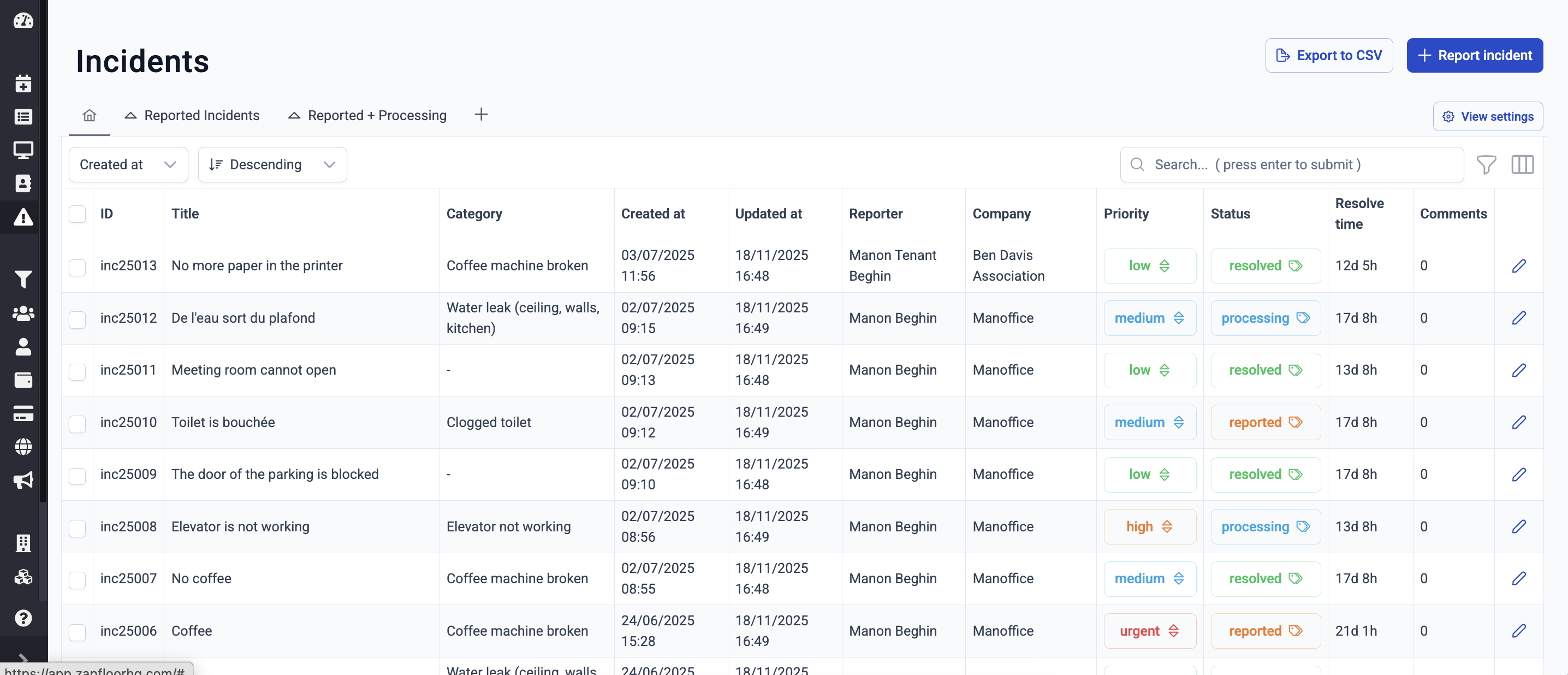 The Incidents module now features a refreshed layout designed for clearer navigation and faster access to key actions.